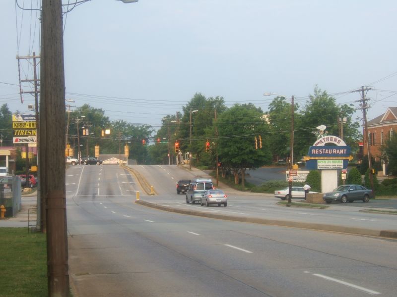 Right Image: The Athens Restaurant at Independence and 4th Street was a Charlotte landmark for 45 years. On September 30, 2006, this staple of Charlotte's past closed its doors to make way for an expanding Central Piedmont Community College campus. The owners of the Athens hope to revive the restaurant at a new nearby location. |