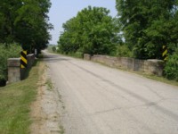 Left and Right Photos: A stone arch bridge found on a former alignment of the National Road west of Norwich. (Photos taken by Mike Kentner, June 2, 2007) | ![]() |