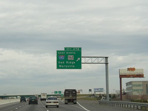 | Overhead for I-140 East, TN 162 on I-40 East/I-75 North (Exit 376); Farragut. I-140 was commissioned in the 1990s. | Chris Patriarca; December 30, 2002 |