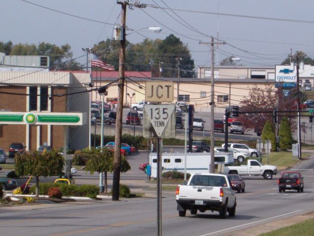 | Old Junction TENN 135 shield on US 70N; Cookeville. Another holdout from Tennessee's prior signing practices. | Billy Riddle; 2004 |